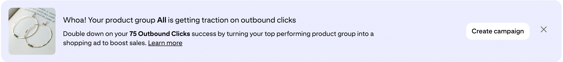 To bring this back to a product seller, such as jewelry, I want to mention another thing I’ve encountered when reviewing my client’s top-performing Pins. This is a notification within the analytics section of their Pinterest Business account. It’s basically telling you that the product group, another word for product Pins, is turning into your top-performing Pin category.